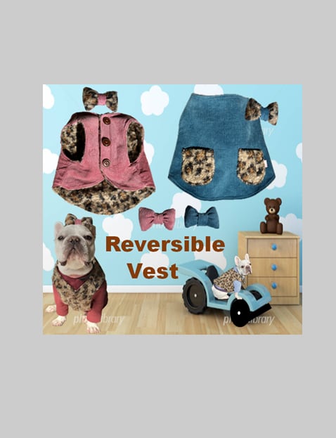 渦巻ファーのレオパ―ドRベスト フレンチブルドッグ フレブル 防寒対策 レオパード