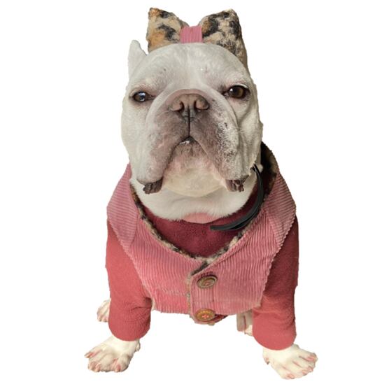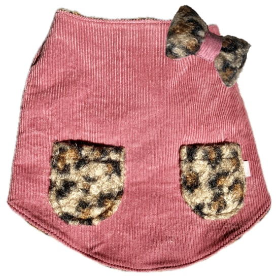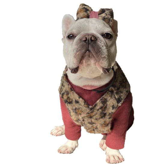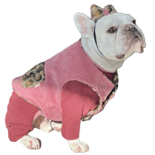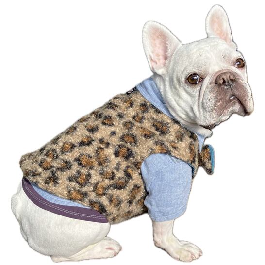 渦巻ファーのレオパ―ドRベスト フレンチブルドッグ フレブル 防寒対策 レオパード