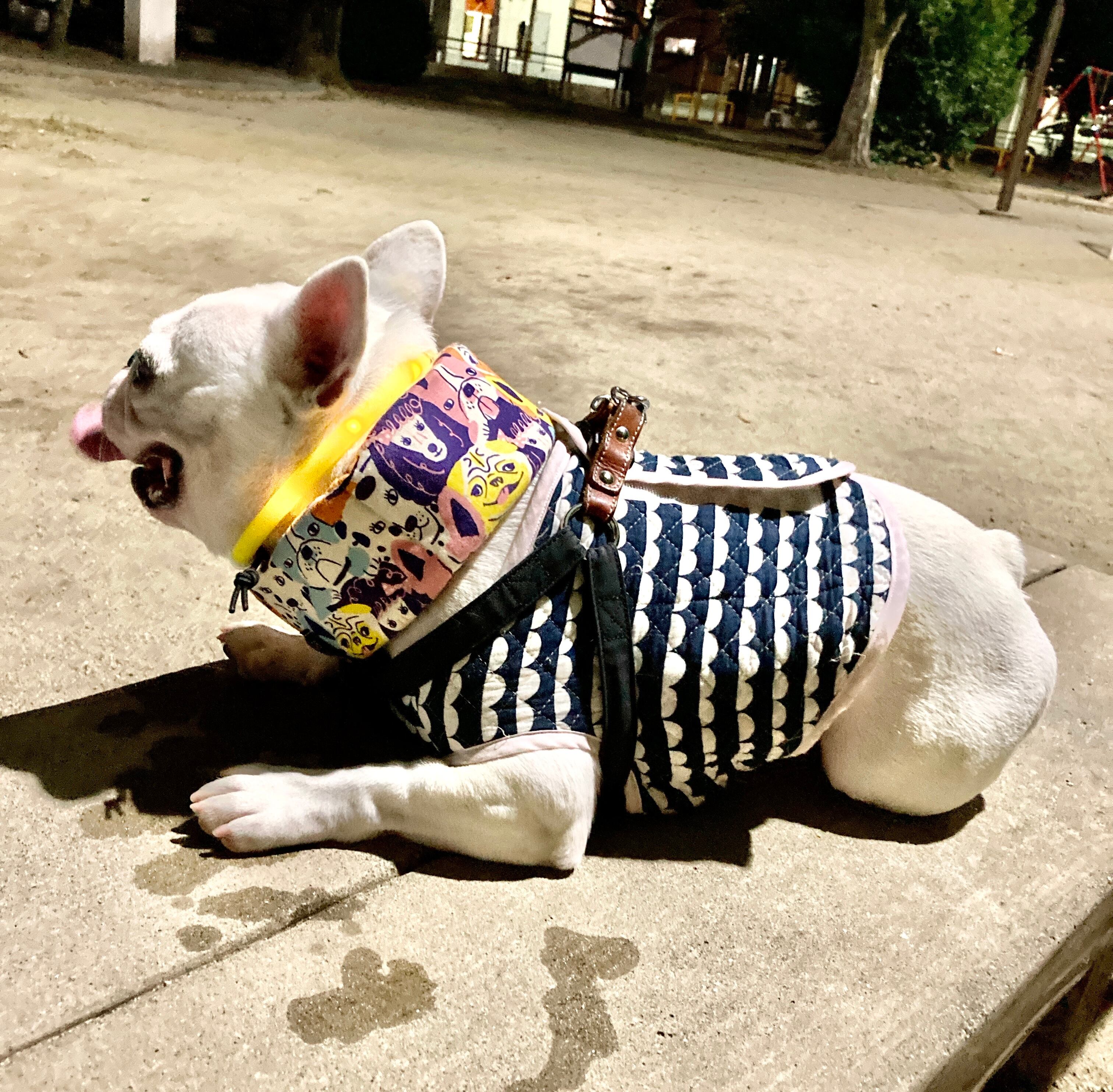 夏の必需品、クールネックの販売です。シンプルなお洋服でもPOPに合わせられるカラフルでかわいいワンコ柄で生地もしっかりしています。内側の保冷剤ポケットの後ろの生地と生地の間に、アルミの保冷シートを内蔵し少しでも保冷剤が溶けにくくなるように工夫してます。内側に(縦9cm×横14cm)のポケットが4つあります。(※保冷剤は付属していません)上下にゴムが入ってるのでストッパーで縛って冷気を閉じ込めることが出来ます。